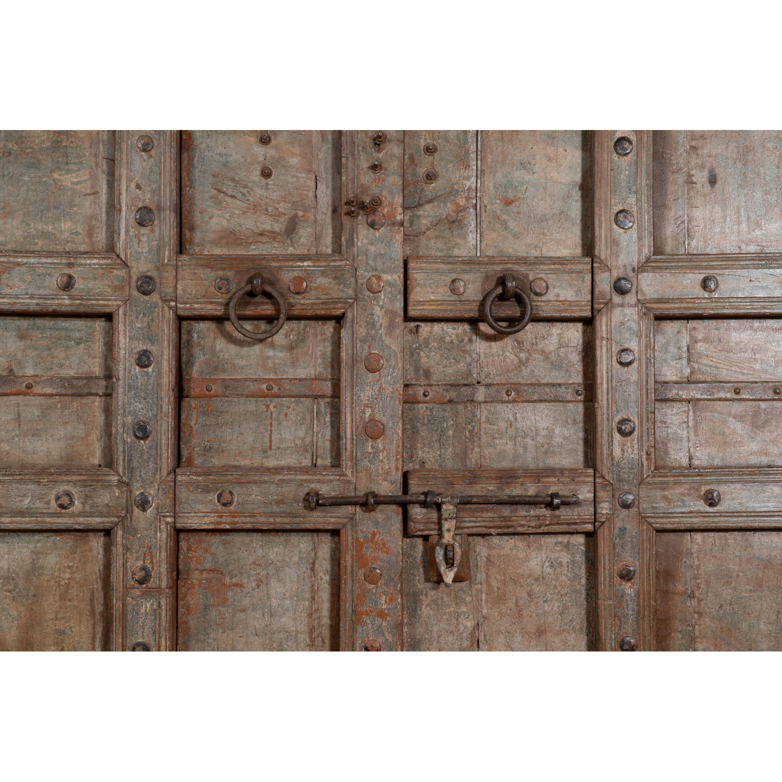 Antike Tür/Tor aus massivem Teakholz mit einer Länge von 202 cm, einer Tiefe von 23 cm und einer Höhe von 229 cm. Diese Tür stammt aus dem Abriss und der Wiederverwertung alter und bedeutender Gebäude. Jede Tür wurde sorgfältig restauriert und für den Außenbereich behandelt und ist ein echtes und einzigartiges Antiquitätenstück. Alle Maße beziehen sich auf die maximalen Abmessungen des Artikels.