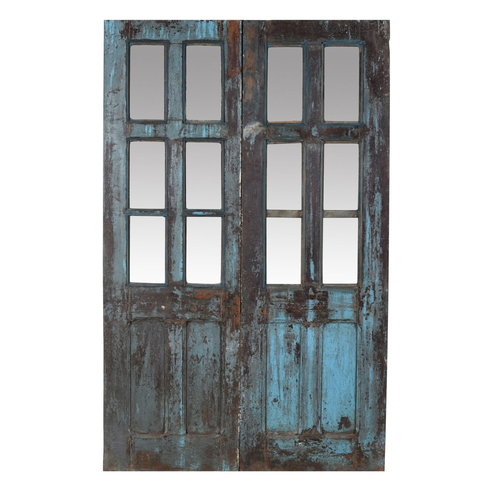 Alte mittelalterliche Tür aus Massivholz und Eisen für den Innen- oder Außenbereich mit Glas