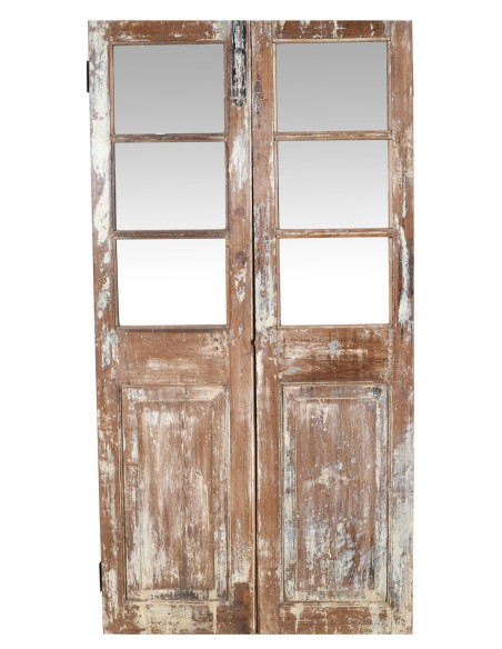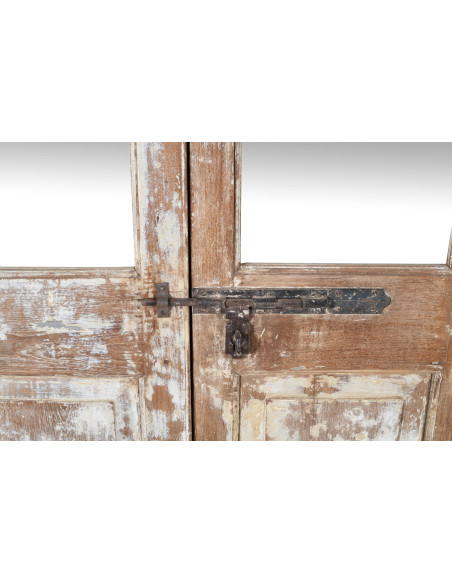 Alte mittelalterliche Tür aus Massivholz und Eisen für den Innen- oder Außenbereich mit Glas