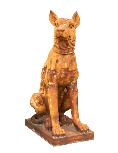 Alte Statue eines sitzenden Hundes aus Gusseisen