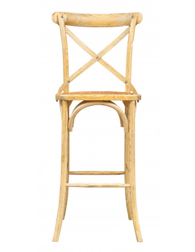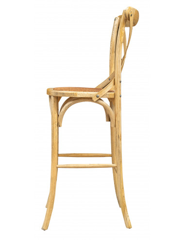 Barhocker aus massivem Thonet Eschenholz und Rattansitz mit natürlicher Oberfläche L 46 x PR 42 x H 118 cm