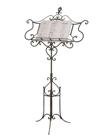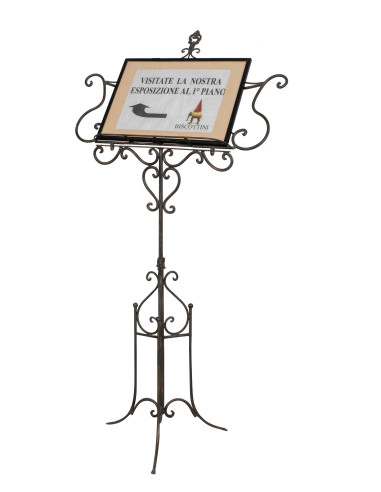 Praktisches und sehr stabiles Bodenlesepult L85xPR50xH140 cm aus massivem Schmiedeeisen, höhenverstellbar. Es ist ein vielseitiges und elegantes Einrichtungszubehör, sehr gut geeignet als Menühalter für Restaurants.Alle Maße beziehen sich auf die maximale Größe des Artikels