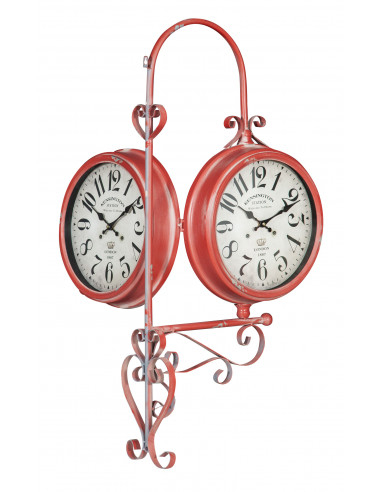 Doppelseitige Wanduhrstation Typ Eisen Finish rot antik