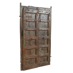 Massive antike Tür/Tor aus Teakholz mit den Maßen Länge 99 cm, Tiefe 9 cm, Höhe 178 cm. Diese Tür stammt aus dem Abriss und der Restaurierung von wichtigen alten Gebäuden. Fein restauriert und für die Verwendung im Freien behandelt, ist jede Tür ein Stück echte und einzigartige Antiquitäten. Alle Maße beziehen sich auf die maximalen Gesamtabmessungen des...