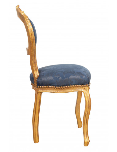 Französischer Sessel im Louis-XVI-Stil aus massivem Buchenholz mit antikem Gold- und Blau-Finish