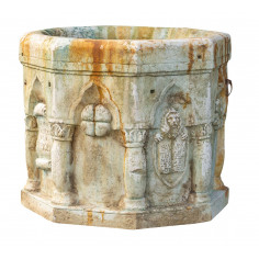 Marmor-Waschbecken, vollständig handgefertigt. Größe L70xPR33xH17 cm. Der Artikel ist bereits mit Ablaufloch ausgestattet und wurde aus einem einzelnen Marmorblock geschaffen. Die Nuancen und die Maserungen des Marmors machen jedes Stück einzigartig. Das Produkt kann ideal als Waschbecken in dem Innenraum oder in dem Außenraum eingesetzt werden, aber es...