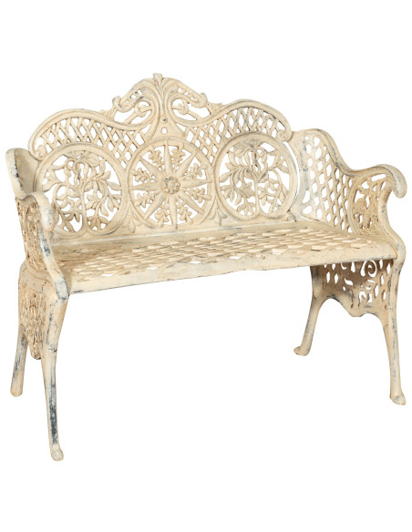 Sehr robuste, stabile und schwere Bank aus Gusseisen mit einer Breite von 110 cm, einer Tiefe von 55 cm und einer Höhe von 90 cm, mit sorgfältiger, vollständig handgefertigter Verarbeitung, die einen echten antiken Effekt erzielt. Sorgfältig gefertigt, reproduziert es das Design der alten englischen und französischen Bänke des 19. Jahrhunderts. Es richtet jede Innen- und Außenumgebung elegant ein.