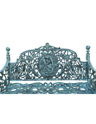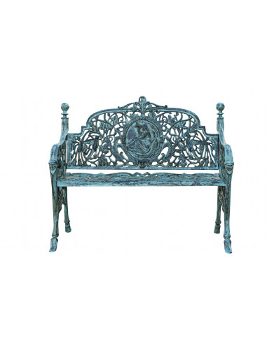 Sehr robuste, stabile und schwere gusseiserne Sitzbank mit einer Breite von 105 cm, einer Tiefe von 62 cm und einer Höhe von 90 cm, mit einer sorgfältigen, vollständig handgefertigten Verarbeitung, die einen echten Antik-Effekt erzielt. In sorgfältiger Handarbeit wurde das Design alter englischer und französischer Bänke aus dem Jahr 1800 nachgebildet. Er verleiht jedem Innen- oder Außenbereich eine elegante Note. Alle Maße beziehen sich auf die maximalen Gesamtabmessungen des Artikels.