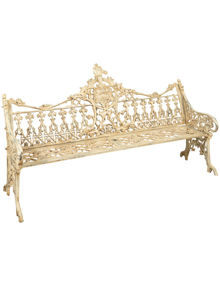 Sehr robuste, stabile und schwere Bank aus Gusseisen mit den Maßen Breite 112 cm, Tiefe 48 cm, Höhe 89 cm, mit einer sorgfältigen Verarbeitung komplett handgefertigt, um einen echten antiken Effekt zu erzielen. In sorgfältiger Handarbeit wurde das Design antiker englischer und französischer Bänke aus den 1800er Jahren nachempfunden. Verleiht jeder Innen-...