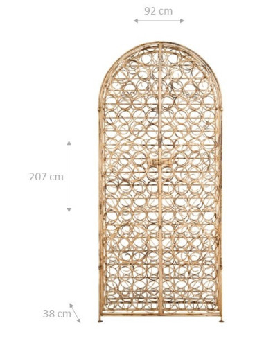 92 cm breit, 38 cm tief, 207 cm hoch Weinregal aus massivem Schmiedeeisen, handgefertigt, sehr stabil und schwer. Mit einer Kapazität für Flaschen ist das Weinregal ein funktionelles und praktisches Möbelstück für wichtige Räume. Dank des massiven Materials und der vier Füße am Boden ist das Flaschenregal sehr stabil. Ideal für private Räume, aber auch für Weinkeller, Bars, Restaurants, Pizzerien, Gasthöfe, Tavernen, Hotels, Kneipen, Empfänge, Spielsäle, Nachtclubs, Geschäfte, Wellness-Zentren, Warteräume, Büros, Konferenzräume, professionelle Studios. Alle Maße beziehen sich auf die maximalen Gesamtabmessungen des Artikels.