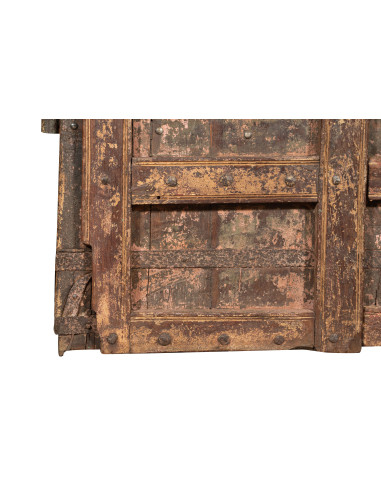 Massivholz- und Eisentür für den Innen- und Außenbereich, alte mittelalterliche Tür schieben