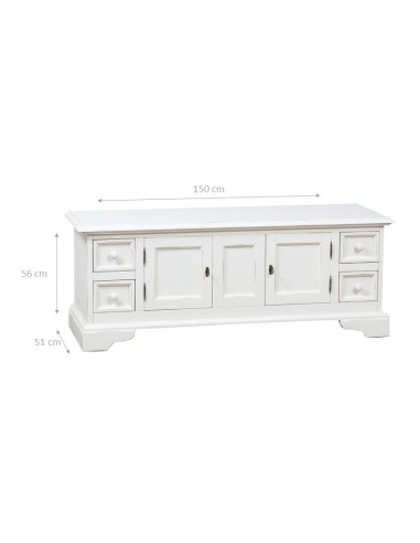 TV-Ständer im Country-Stil aus massivem Lindenholz mit antikiertem weißem Finish L150xPR51xH56 cm. Made in Italy