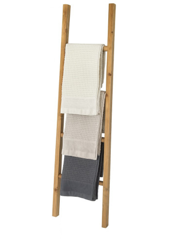 Handtuchleiter aus Holz, die sowohl in ihrer Ästhetik als auch in ihrer Konstruktion den alten Leitern nachempfunden ist. Ein sehr vielseitiges Einrichtungsaccessoire und zugleich ein funktionales Hilfsmittel für den Alltag. Da jede Leiter handgefertigt ist, kann sie sich in ihrer Ausführung geringfügig von den anderen unterscheiden. Die Maße der Leiter betragen 130 cm Höhe, 35 cm Breite und 4 cm Tiefe.