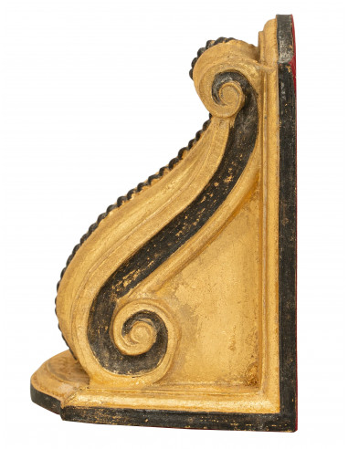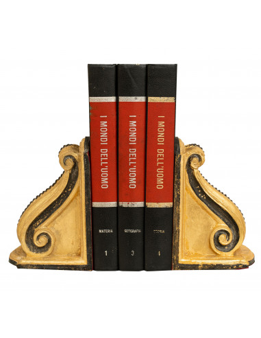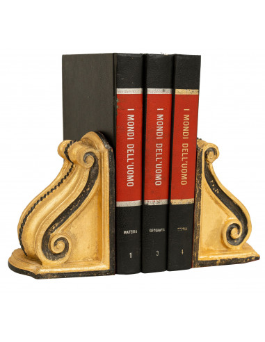 Paar Buchstützen aus Holz mit antikem Blattgold-Finish und Schwarz Made in Italy