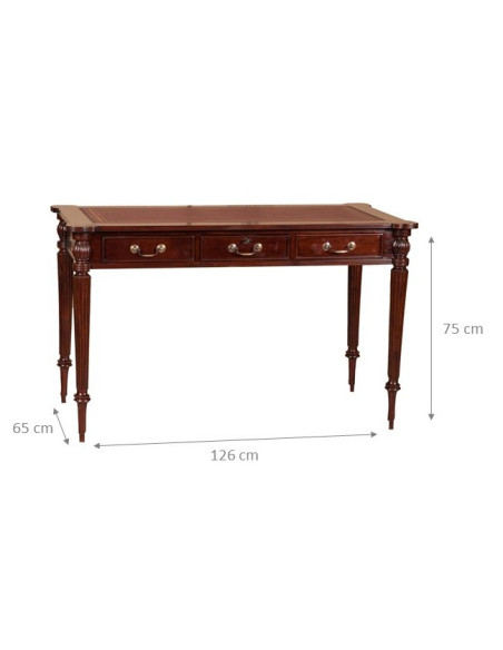Schreibtisch aus massivem Mahagoniholz mit Nussholz Finish 126x65x75 cm.