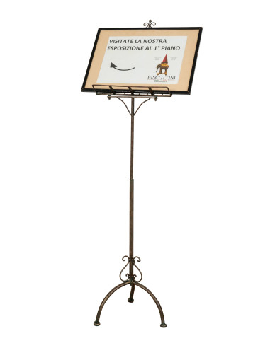 Praktisches und sehr stabiles Stehpult L46xPR32xH139 cm aus massivem Schmiedeeisen. Verstellbar in der Höhe von mindestens 120 cm bis maximal 165 cm (Maße beziehen sich auf die maximale Größe des Artikels), ist es ein vielseitiges und elegantes Möbelstück. Auch sehr gut geeignet als Speisekartenhalter für Restaurants.