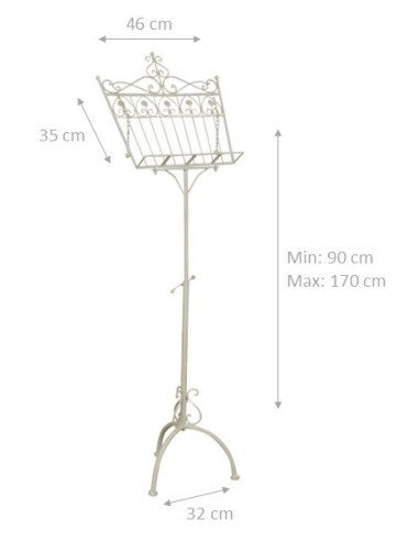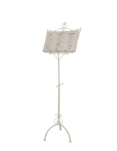 Standlesepult aus vollem Eisen mit antikiertem weißem Finish L46xPR32xH139 cm.