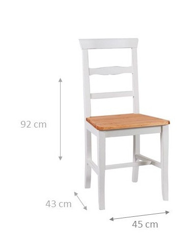 Stühl im Country-Stil mit Struktur aus Buchenholz mit weißem Finish und Sitz aus natürlichem Lindenholz L45xPR43xH92