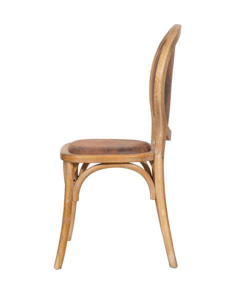 Stuhl aus Massivholz und gepolsterter Sitzfläche in heller Nussbaumoptik
