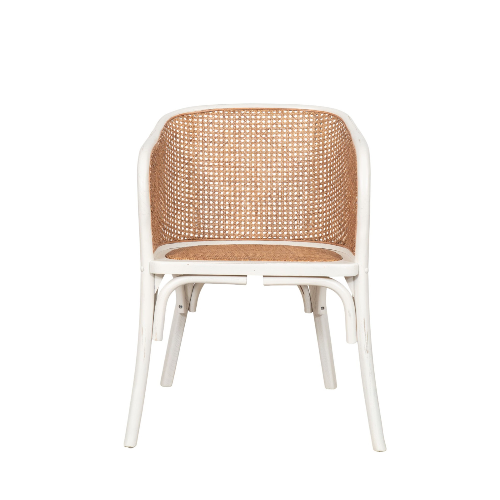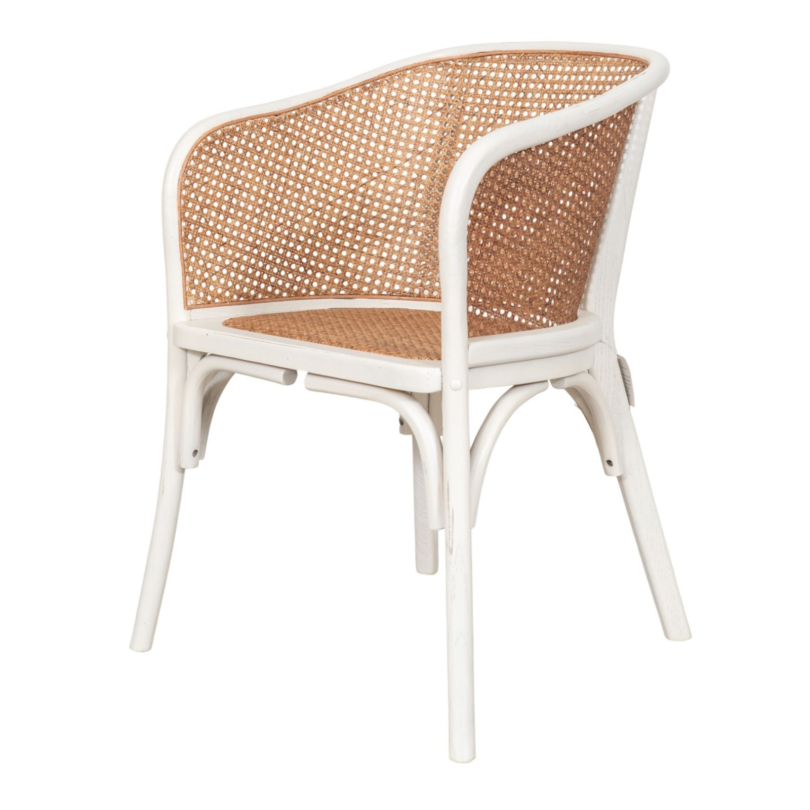 Stuhl aus Massivholz und Sitzfläche aus Rattan mit antikweißer Oberfläche