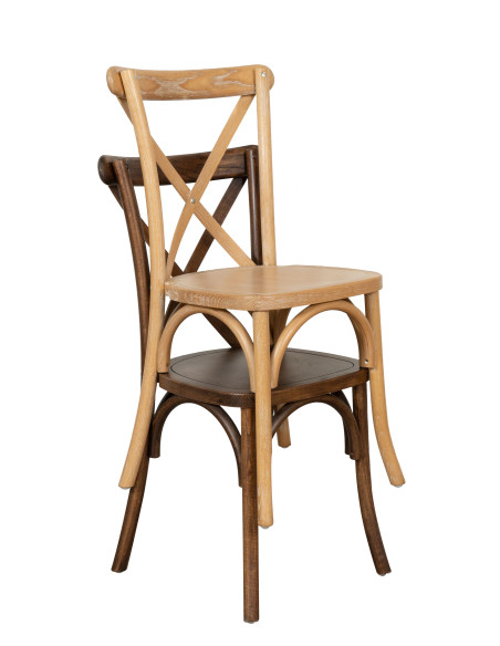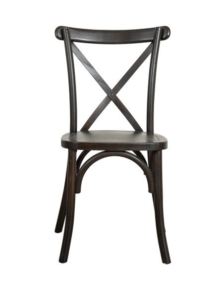 Stuhl mit den Maßen Breite 42 cm, Tiefe 43 cm, Höhe 88 cm im Thonet-Stil aus massiver Esche mit gekreuzter Rückenlehne. Dank seines Bistro-Designs ist er ideal, um jeden Raum oder Veranstaltungsort im Vintage-Stil einzurichten, ohne dabei auf Komfort zu verzichten. Die Höhe vom Boden bis zur Sitzfläche beträgt 45 cm.