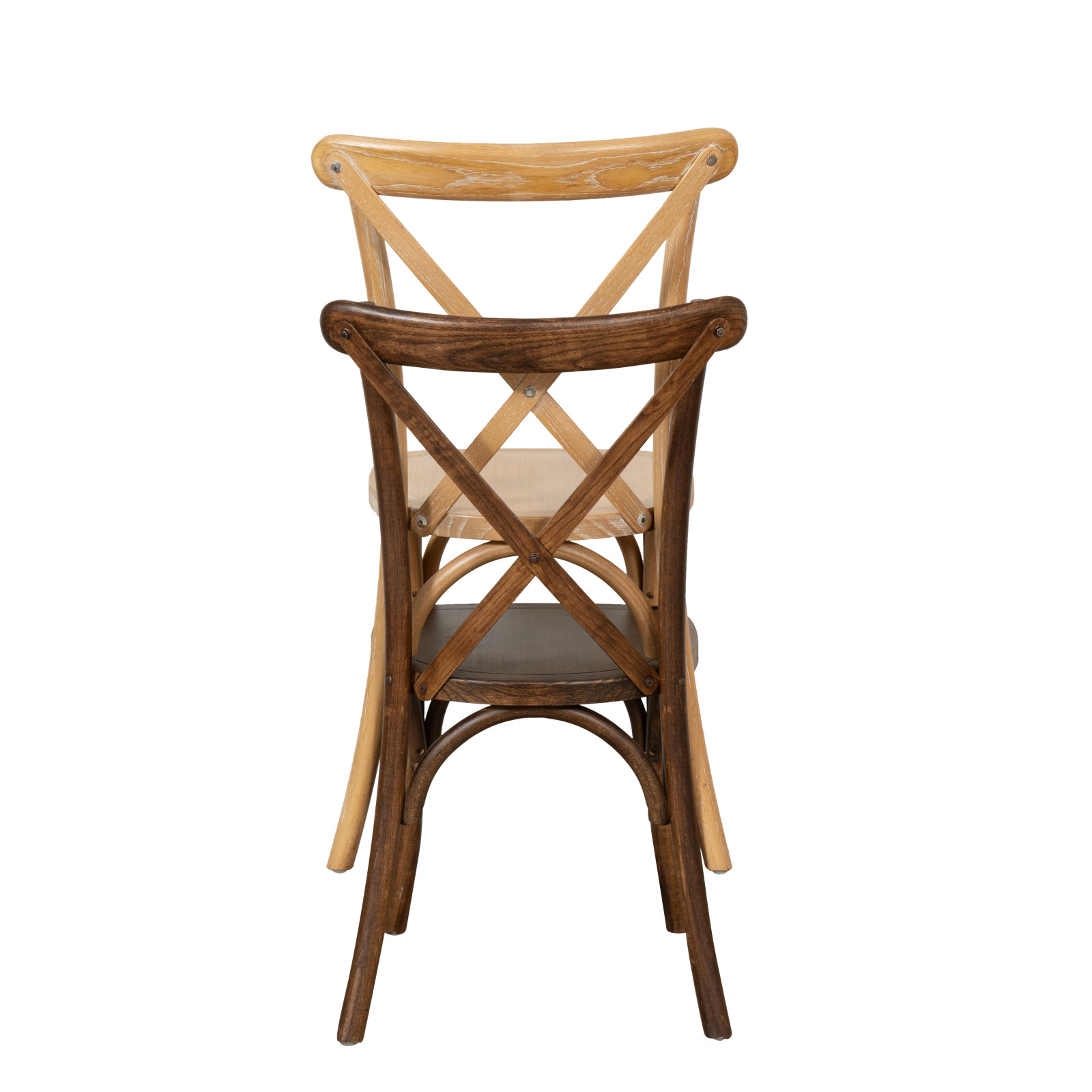 Stuhl Thonet Cross aus massiver Eiche, Sitzfläche aus Holz mit Nussbaum-Finish, stapelbar