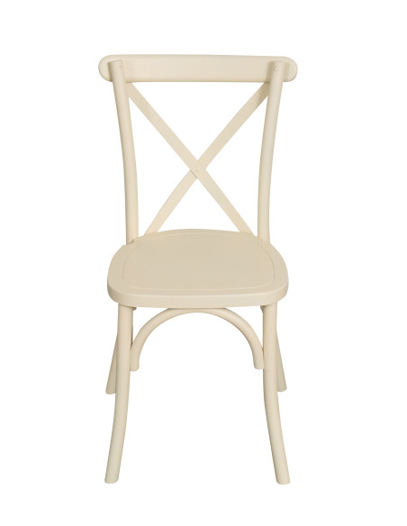Stuhl mit den Maßen Breite 42 cm, Tiefe 43 cm, Höhe 88 cm im Thonet-Stil aus massiver Esche mit gekreuzter Rückenlehne. Dank seines Bistro-Designs ist er ideal, um jeden Raum oder Veranstaltungsort im Vintage-Stil einzurichten, ohne dabei auf Komfort zu verzichten. Die Höhe vom Boden bis zur Sitzfläche beträgt 45 cm.