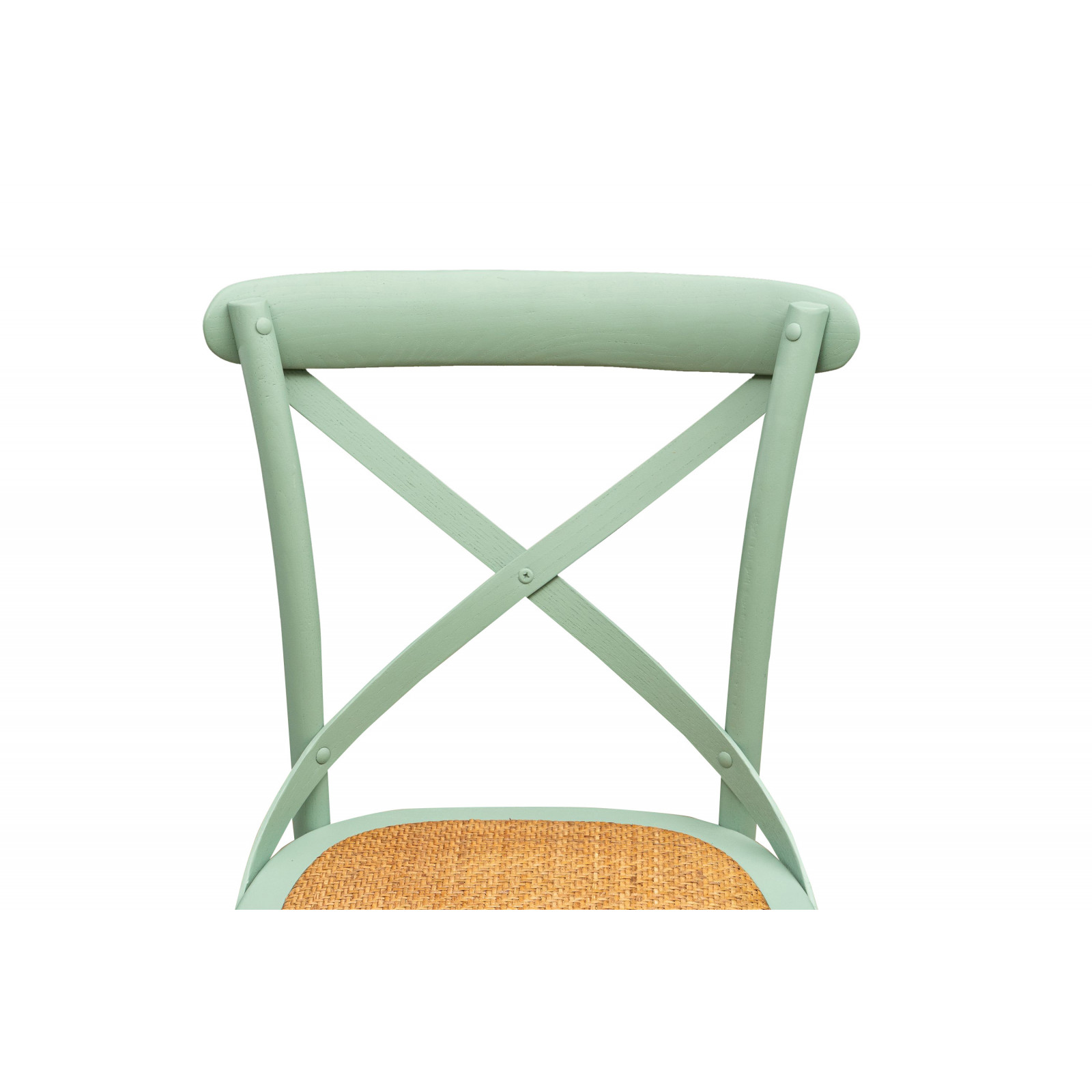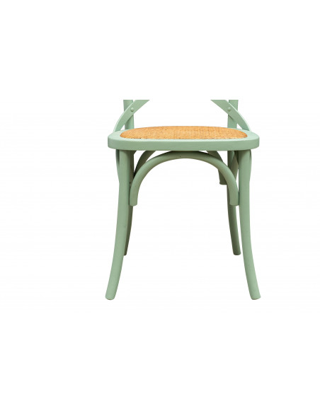 Stuhl Breite 48 cm, Tiefe 52 cm, Höhe 88 cm im Thonet-Stil aus massiver Esche mit gekreuzter Rückenlehne und Sitzfläche aus geflochtener Rattanfaser. Dank ihres Bistro-Designs eignen sie sich ideal, um jede Umgebung oder jeden Raum im Vintage-Stil zu dekorieren, ohne auf Komfort zu verzichten.