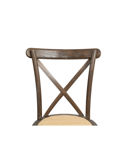Stuhl Thonet Cross aus Massivholz und Sitzfläche aus Rattan in antikbrauner Ausführung, stapelbar