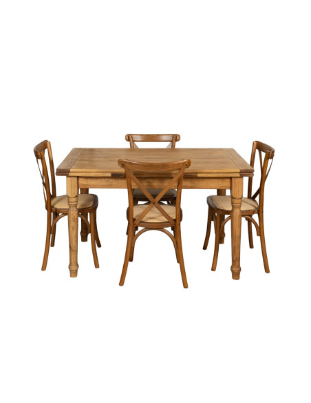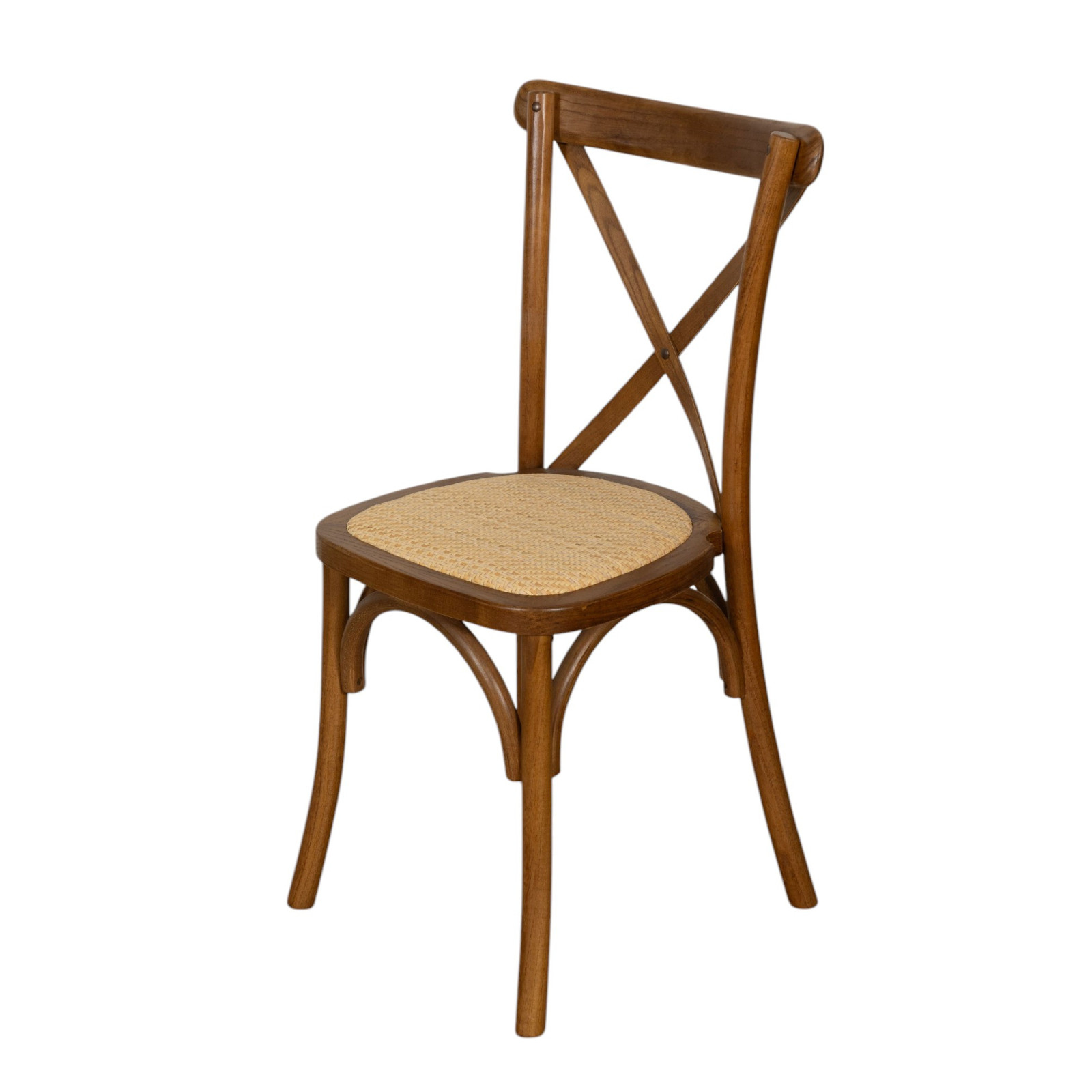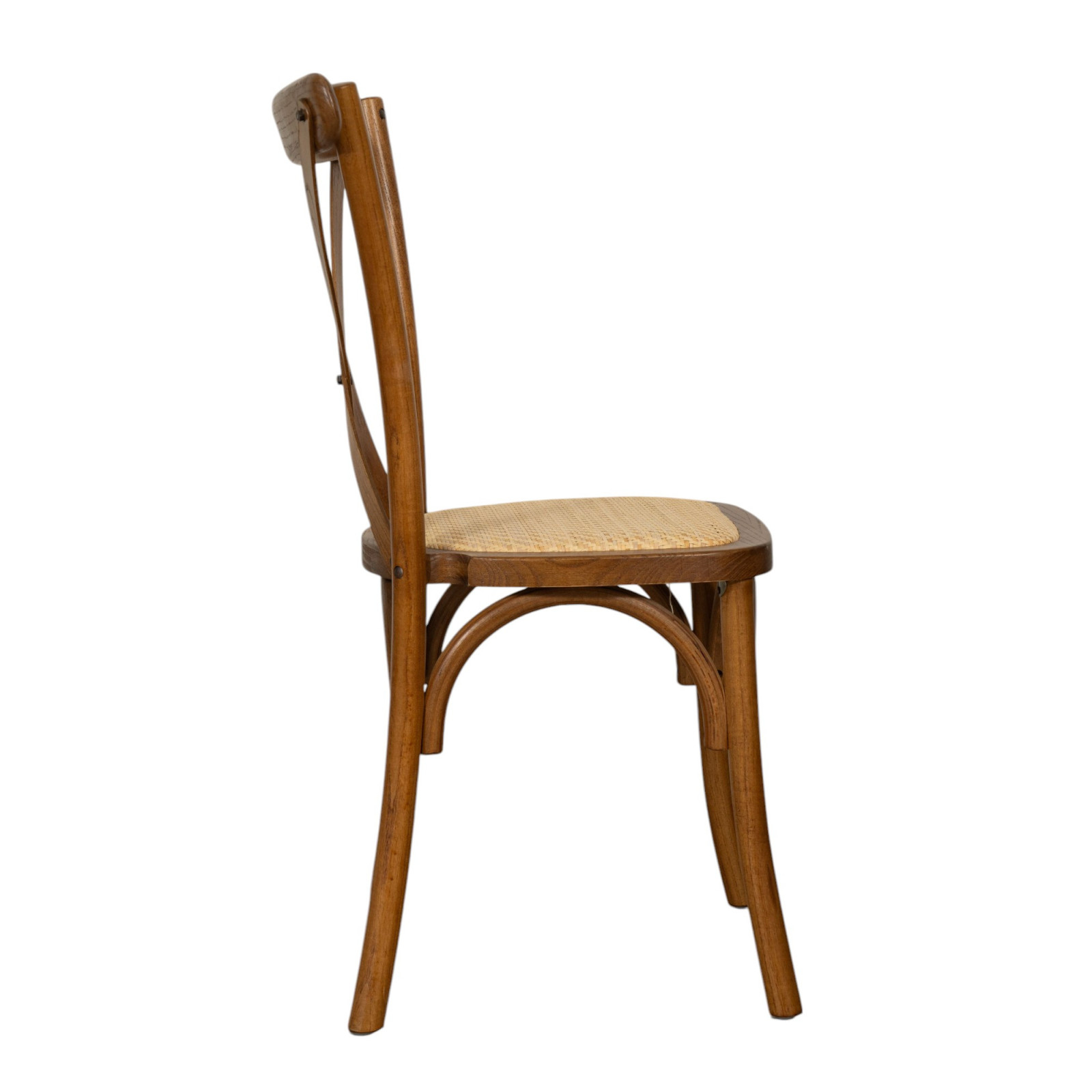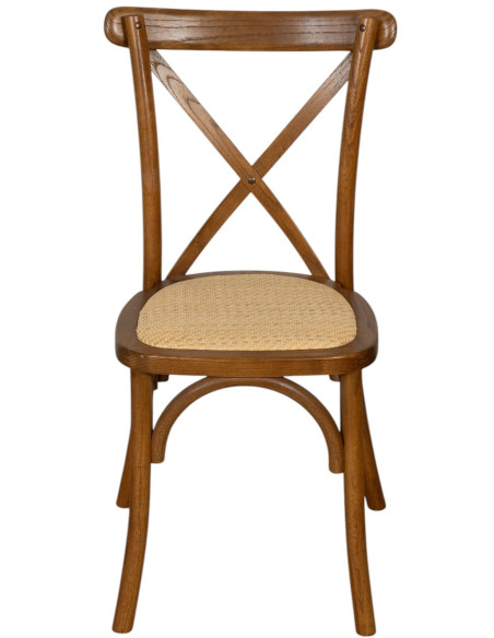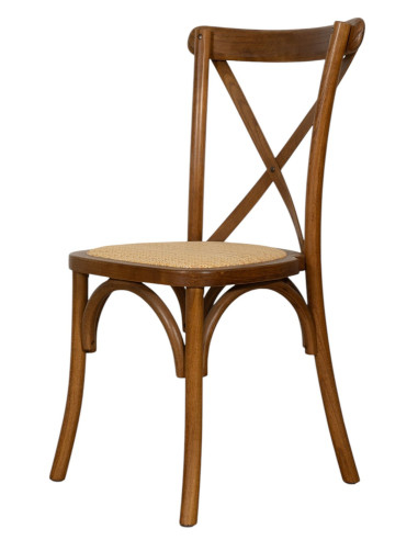 Stuhl Thonet Cross aus Massivholz und Sitzfläche aus Rattan in antiker Holzoptik, stapelbar