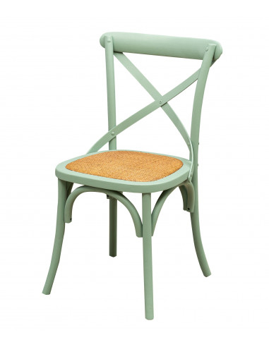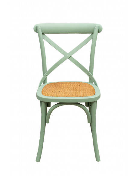 Stuhl Thonet Cross aus Massivholz und Sitzfläche aus Rattan in grüner Ausführung