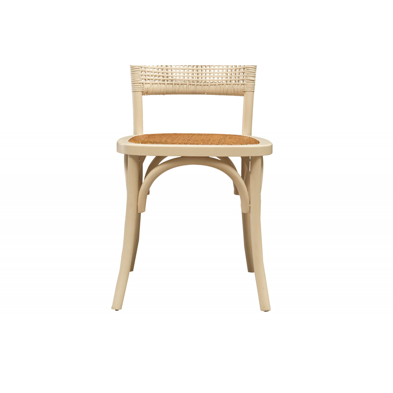 Thonet-Stuhl aus massivem Eschenholz und Rattansitz mit antik-weißer Oberfläche L45xPR50xH88 cm