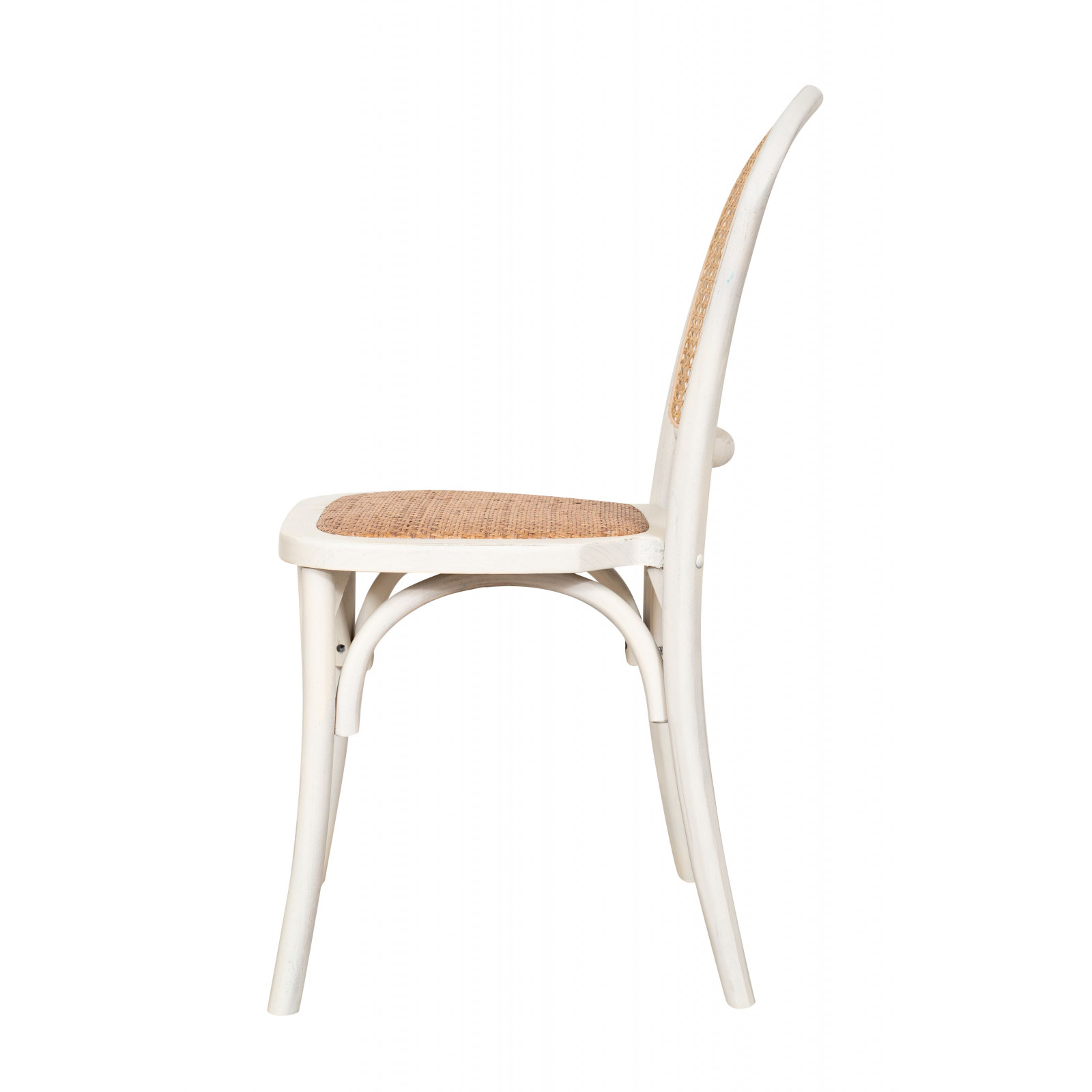 Dieser Stuhl im Thonet-Stil ist 45 cm breit, 47 cm tief und 89 cm hoch. Er besteht aus massiver Esche und verfügt über eine Rückenlehne und Sitzfläche aus geflochtenem Rattan. Sein Bistro-Design macht ihn ideal, um jedem Raum oder Veranstaltungsort einen Vintage-Charme zu verleihen, ohne auf Komfort verzichten zu müssen.