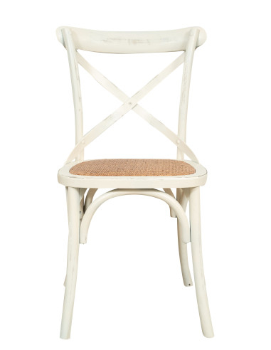 Thonet Stuhl aus massiver Esche und Rattansitz antikweiß lackiert 48x52x88 cm