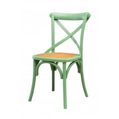 Stuhl Breite 48 cm, Tiefe 52 cm, Höhe 88 cm im Thonet-Stil aus massiver Esche mit gekreuzter Rückenlehne und Sitzfläche aus geflochtener Rattanfaser. Dank ihres Bistro-Designs eignen sie sich ideal, um jede Umgebung oder jeden Raum im Vintage-Stil zu dekorieren, ohne auf Komfort zu verzichten.