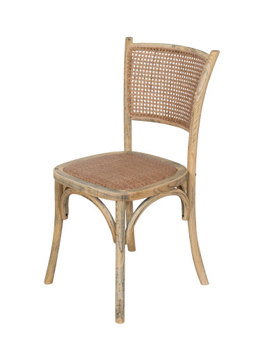 Stuhl mit den Maßen Breite 48 cm, Tiefe 52 cm, Höhe 88 cm im Thonet-Stil aus massiver Esche mit gekreuzter Rückenlehne und Sitz aus geflochtener Rattanfaser. Dank seines Bistro-Designs ist er ideal, um jeden Raum oder Veranstaltungsort im Vintage-Stil einzurichten, ohne dabei auf Komfort zu verzichten.alle Maße beziehen sich auf die maximalen Gesamtmaße...