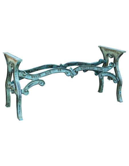 Der gusseiserne Sockel, eine tragende Struktur von beachtlicher Größe, kann große, sogar sehr schwere Stein- und Marmorplatten tragen. Der Sockel ist eine originalgetreue Kopie einer Werkbank aus einer englischen Glashütte, die 1860 geschlossen wurde.