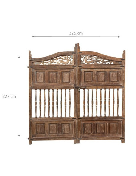 Sehr solides und robustes antikes Massivholztor mit den Maßen 225 cm breit, 7 cm tief, 227 cm hoch. Dieses Tor stammt aus dem Abriss und der Restaurierung von wichtigen alten Gebäuden. Fein restauriert und behandelt auch für den Außenbereich, ist jedes Tor ein Stück echte und einzigartige Antiquitäten. Alle Maße beziehen sich auf die maximalen Gesamtabmessungen des Artikels.