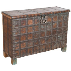 Truhe aus Holz und Eisen mit den Maßen L127xPR46xH89 cm. Sehr geräumig. Verschluss mit doppeltem Vorhängeschloss (nicht mitgeliefert). Außerdem hat sie mehrere Geheimfächer. Diese handwerklich gefertigte Truhe ist ein einzigartiges Stück feiner und antiker Handwerkskunst, dessen kleine Unvollkommenheiten nicht als Mängel, sondern als Vorzüge des Objekts...
