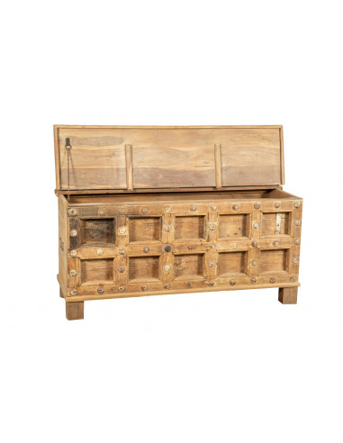 Truhe, Koffer, Bank, Behälter, Etui, antikes Original aus Teakholz mit eingelegtem Finish