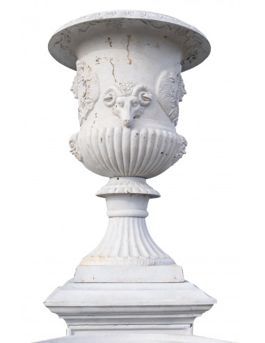 Vase mit Gusseisenfuß mit weiß antikem Finish