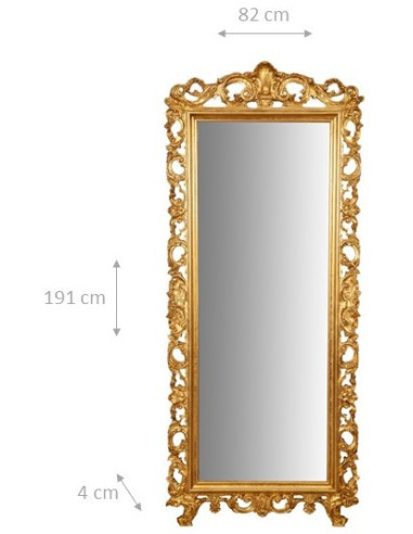 | Wandspiegel aus Holz mit antikem Blattgolddekor, Größe 82 cm lang, 4 cm tief, Höhe 191 cm. Von alten florentinischen Handwerkern sorgfältig bearbeitet und veredelt. Leicht anwendbar, um jede Umgebung zu bereichern und zu dekorieren. Bereits vorbereitet mit Haken zur Befestigung an der Wand. Artikel, der vollständig in Italien hergestellt wurde. Unbestrittener Bezugspunkt für diejenigen, die einrichten wollen, für diejenigen, die ihr Zuhause mit Qualität und Eleganz dekorieren wollen, kann Biscottini dank des umfangreichen Katalogs von Einrichtungsgegenständen jeden Bedarf an Möbeln decken. |