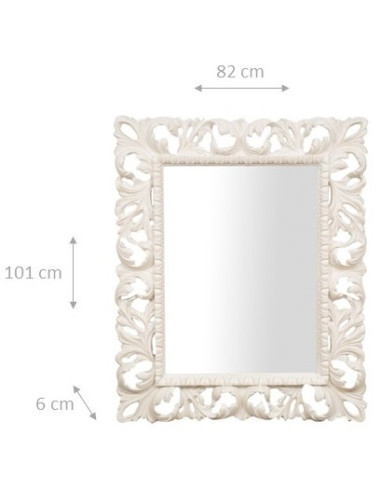 WANDSPIEGEL AUS HOLZ MIT ANTIKWEISSER OBERFLÄCHE, HERGESTELLT IN ITALIEN