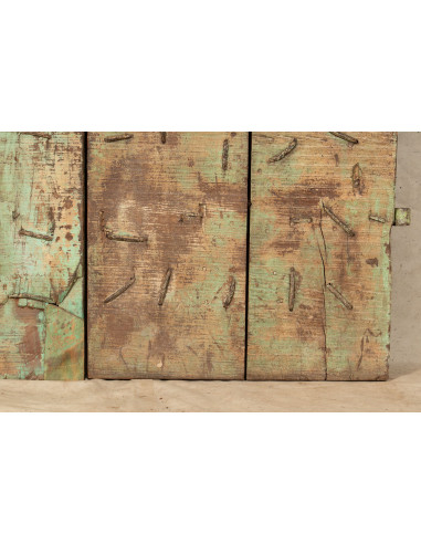 Solid teak antique door/gate with dimensions 102 cm length, 18 cm depth, 195 cm height. This door derives from the demolition and restoration of important old buildings. Finely restored and treated for exterior use, each door is a piece of true and unique antiques. All measurements refer to the maximum overall dimensions of the article.