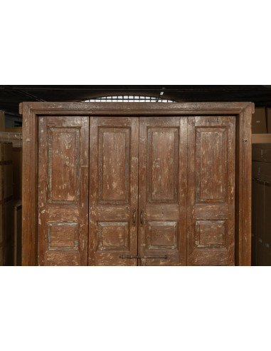 Solid teak antique door/gate with dimensions length 198 cm, depth 15 cm, height 220 cm. This door derives from the demolition and restoration of important old buildings. Finely restored and treated for outdoor use, each door is a piece of true and unique antiques. All measurements refer to the maximum overall dimensions of the article.