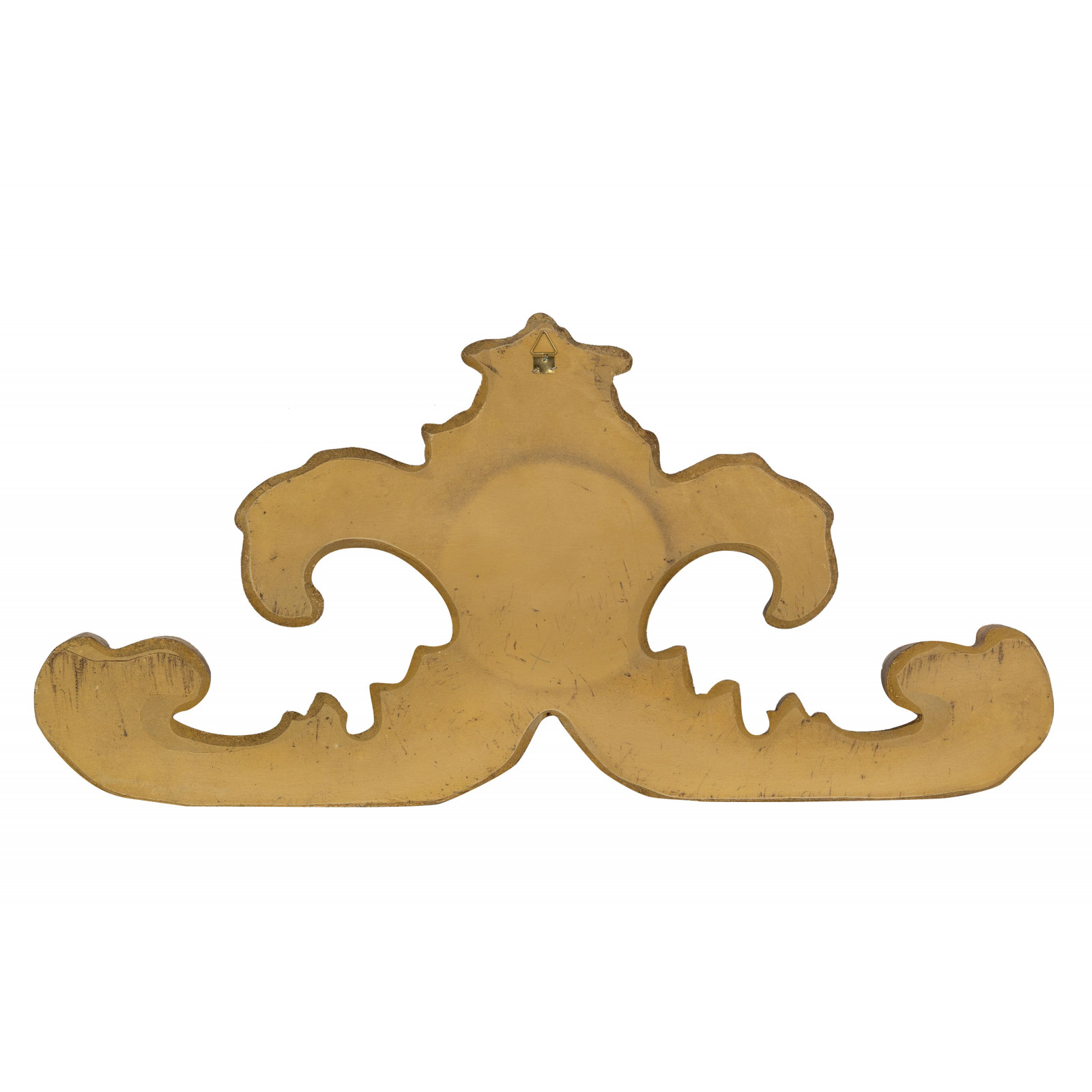 Over door frieze measuring 78 cm in length, 8 cm in depth, 37 cm in height made of wood with antique gold leaf finish. Carefully crafted and finished by old Florentine craftsmen. Easily applied to enrich and decorate walls, doors, mirrors, pictures... Already fitted with hooks for wall mounting. Article entirely made in Italy.