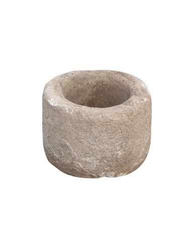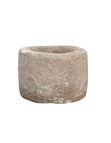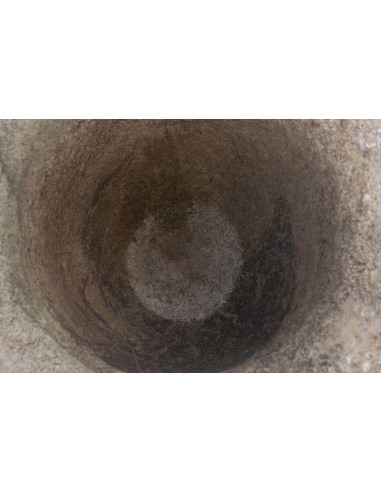 Stone mortar with dimensions 54 cm diameter, 42 cm high, used in antiquity for grinding seeds.