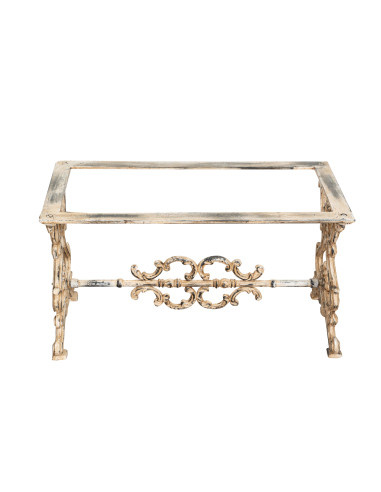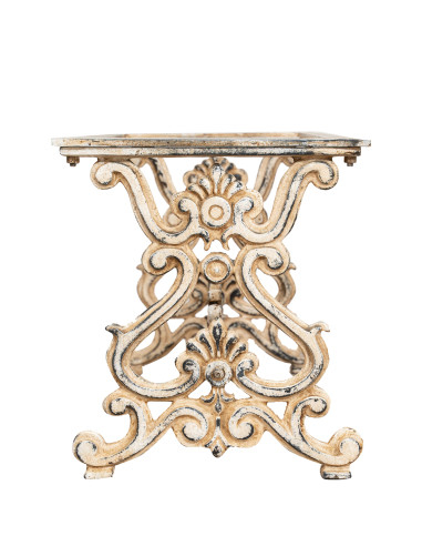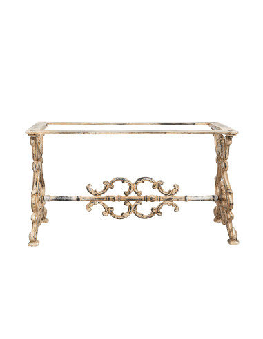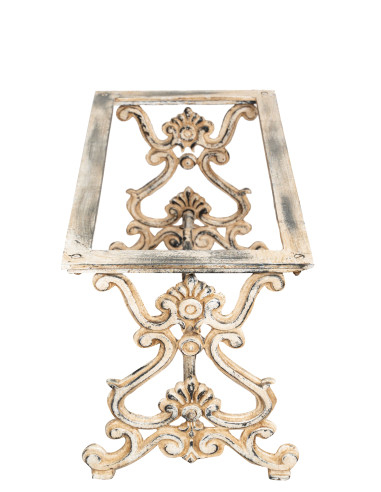 The cast-iron base, a load-bearing structure of considerable size, can support large, even very heavy stone and marble tops. The base is a faithful copy of a workbench from an English glassworks, closed in 1860.