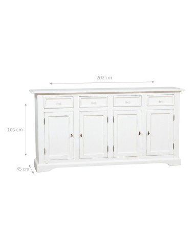 Country style solid lime wood antiqued white finish W202xDP45xH103 cm sized sideboard. Made in Italy