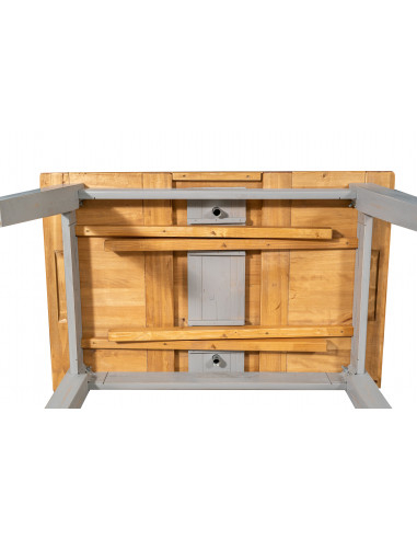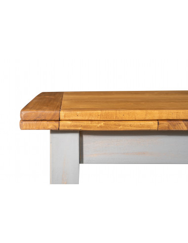 Extensible Country table in solid lime wood with grey antiqued structure and natural Made in Italy top